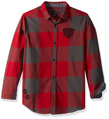 Buffalo by David Bitton Big Boys' Long Sleeve Button Down Shirt, Cinge Cranberry, Medium (10/12)