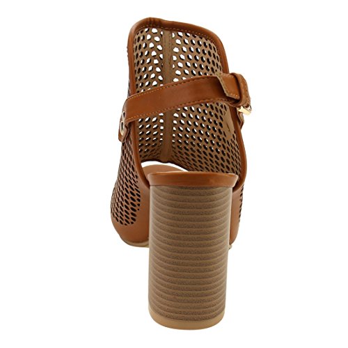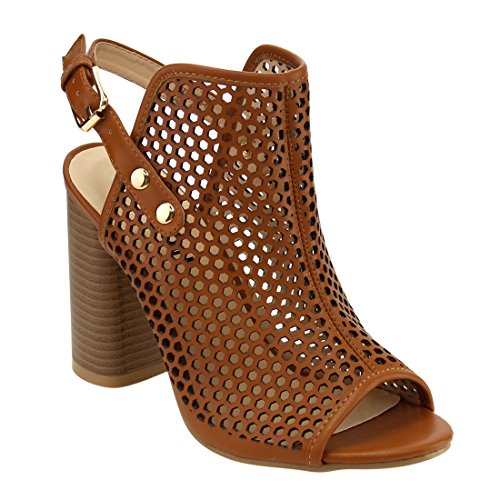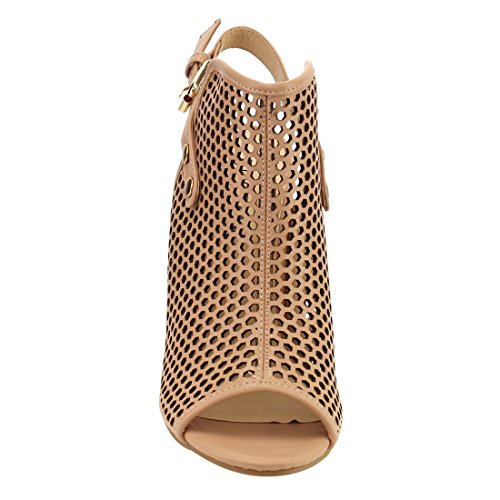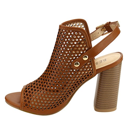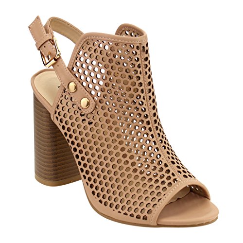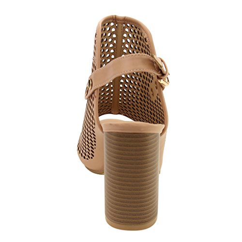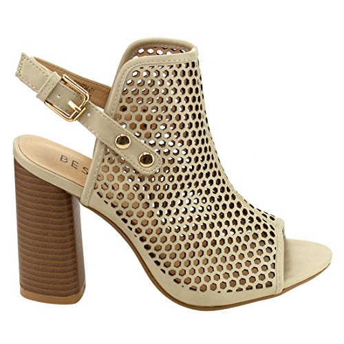 Beston FH21 Women's Slingback Peep Toe Cut Out Block Heel Bootie Sandals