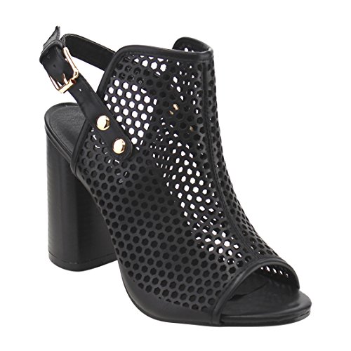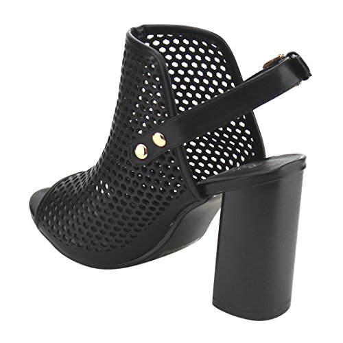 Product Description Be admired for your fashion prowess in these peep-toe bootie! Featuring peep toe front, laser-cut details throughout, slingback strap with adjustable buckle closure, and stacked block heel. 0