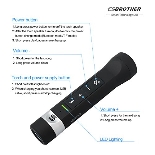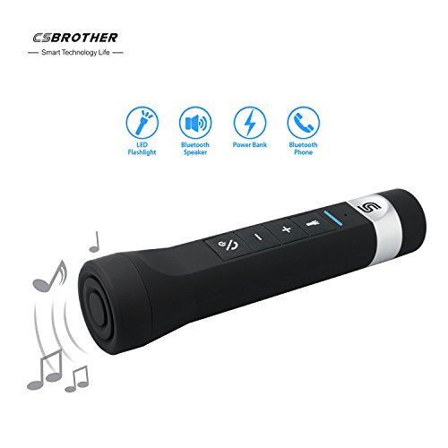 CSBROTHER 4-in-1 Bluetooth Speaker Portable Charger Power Bank 2600mAh LED Flashlight Multifunctional Bluetooth Bicycle Speaker Handsfree Microphone for Outdoor Activities(Black)
