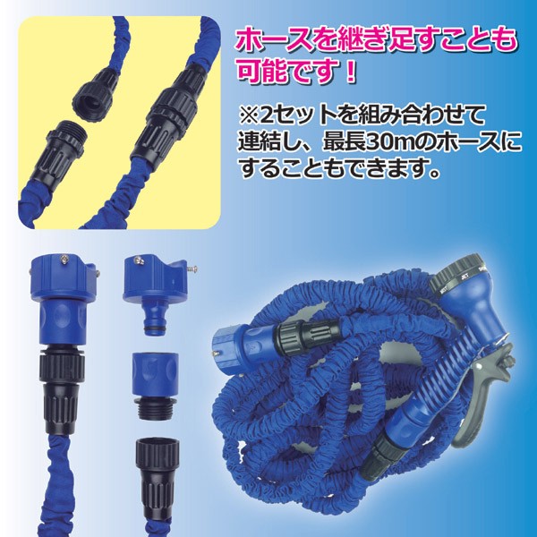 【商品名】NEW魔法のホース(ホースセット) 全長最大15m 7種類散水パターン (洗車/ガーデニング/玄関回り)