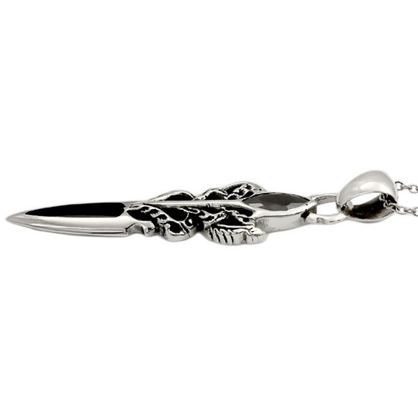 賢者の剣と言われるRoyal Jokerフィロソファーズソードペンダント。大きな剣にオーバルカットされたブラックCZ(キュービックジルコニア)が光輝く賢者の剣にふさわしい高貴なペンダント。胸元に存在感を持たせたい時にオススメです。本物のシルバーだから出せる質感が堪能できるアイテムです。専用のケースが無料で付属するので、プレゼント・ギフトにとってもオススメです。