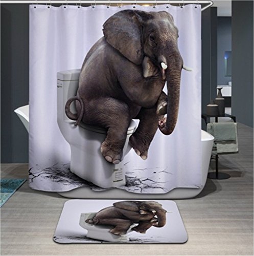 Home Fashion Elephant Toilet Shower Curtain, Size Width X Height / 72 X 72 Inches / W * H 180 By 180 Cm, Polyerster, Anti-bacterial, Best And Suitable For Husband