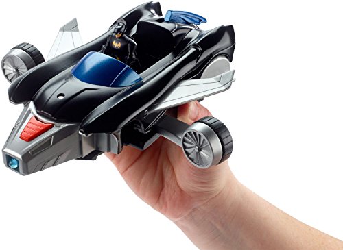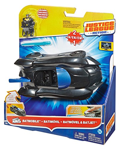 -. Binding : Toy -. Brand : Mattel -. Color : Multi -. EAN : 0887961385205 -. Feature : Signature Batmobile featuring new Justice League Action deco / Batmobile morphs into high speed flight mode Batjet / Includes exclusive Batman mini figure with pop off joints for mix-and-match play with other DC mini figures (sold separately) / Vehicle has a side-mounted blaster that fires projectiles / Perfect addition to any Batman collection -. IsAdultProduct : 0 -. Label : Mattel -. Manufacturer : Mattel -. Model : DWM48 -. MPN : DWM48 -. NumberOfItems : 1 -. PackageQuantity : 1 -. PartNumber : DWM48 -. ProductGroup : Toy -. ProductTypeName : TOYS_AND_GAMES -. Publisher : Mattel -. ReleaseDate : 2017-06-30 -. Studio : Mattel -. Title : DC Comics Justice League Action Batmobile and Batjet Vehicle -. UPC : 887961385205 -. Warranty : 1 year warranty against manufacturer defects