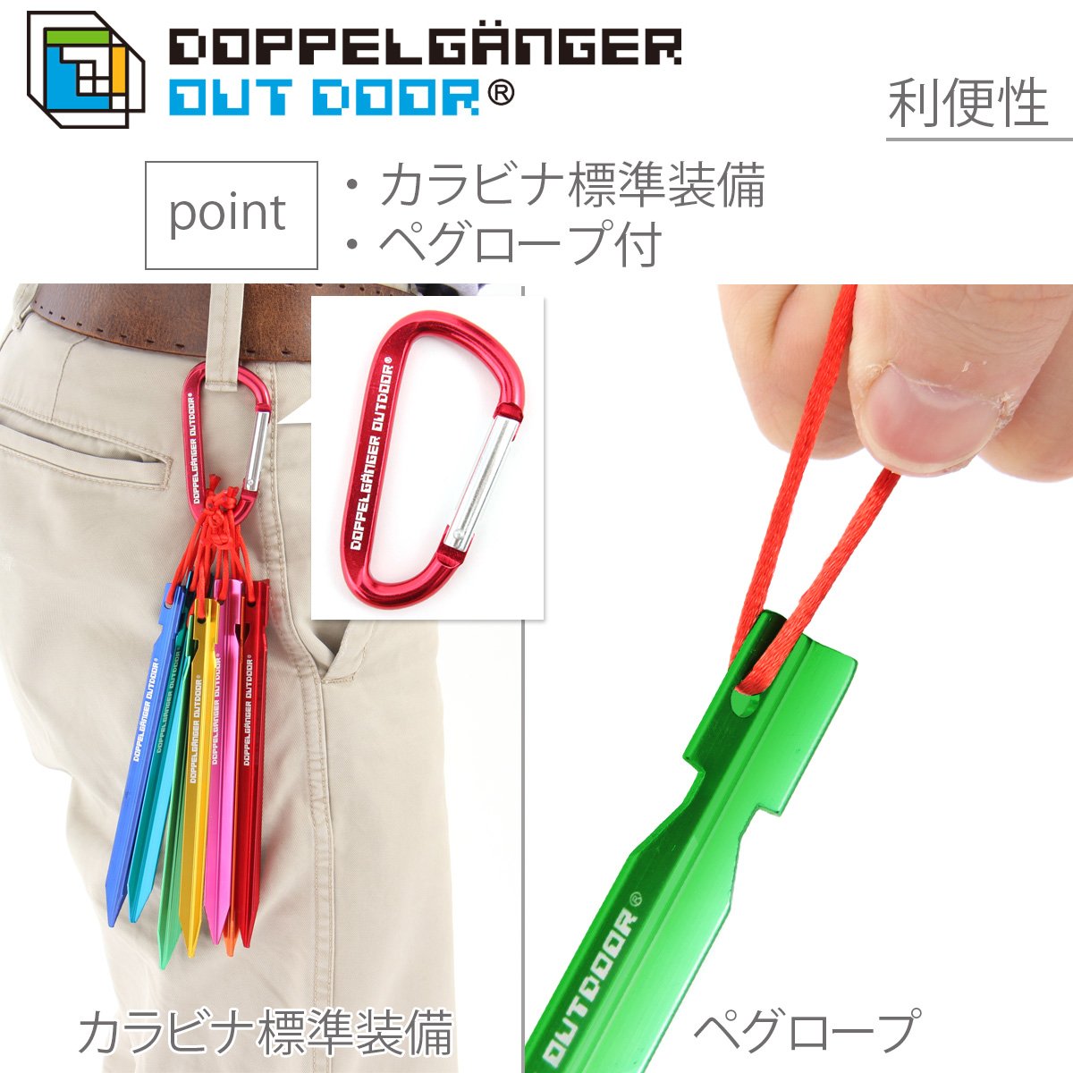 You can hang on the belt loop and set up work or you can decorate surplus pegs as accent of the tent site.