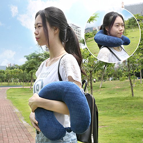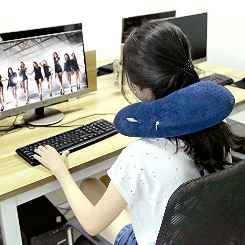 Neck Pain Pillow, VenusCare Best Comfortable Neck support Pillow with Memory Foam Velvet for Travel, Car, Office, School (Dark Blue)