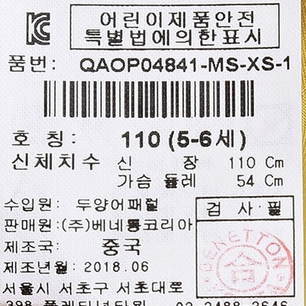 제조자 : 베네통코리아