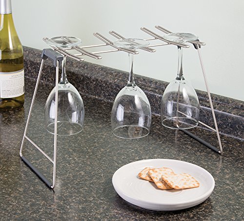 Non-skid plastic feet help keep drying rack secure; Portable, foldable design makes storage convenient and easy; Holds up to 6 wine glasses