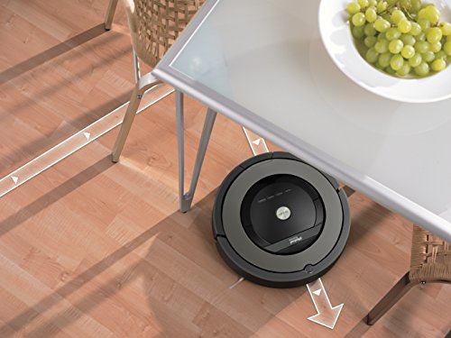 The Roomba® 877 Vacuuming Robot loosens, lifts, and suctions dirt with up to 5x more power. Ideal for homes with pets, the robot vacuum features tangle-free brushes and a high-efficiency filter. Guided, room to room cleaning allows Roomba 877 to tackle more of your home in one job. Just press CLEAN or schedule Roomba up to 7x/week.Feature
