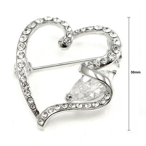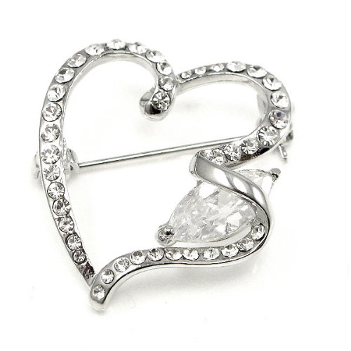 -. Title : Glamorousky Elegant Heart Brooch with Silver Swarovski Element Crystal (375)