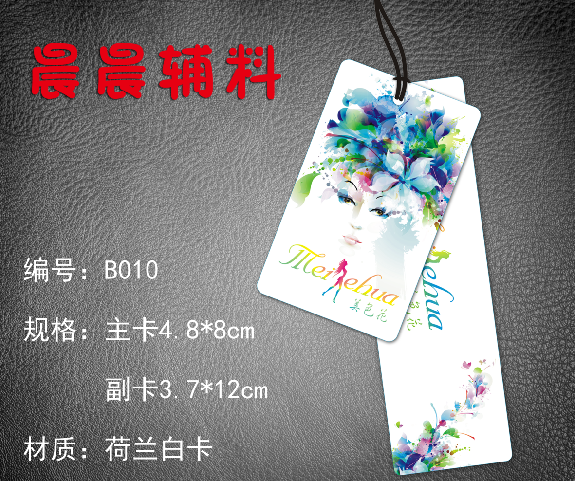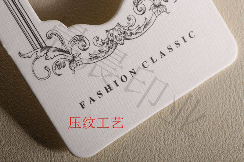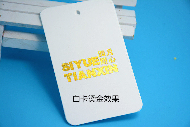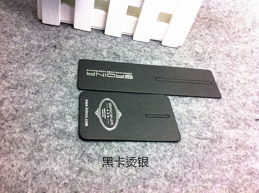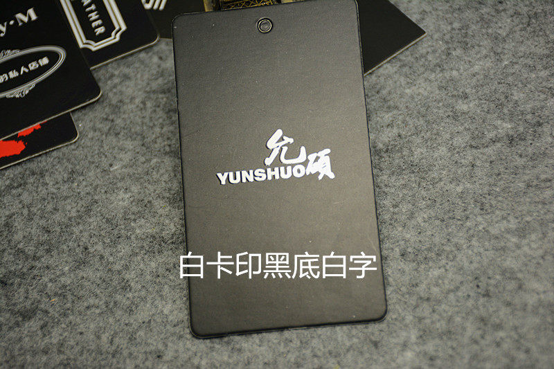 吊牌属性:黑卡白卡纸 :表面粗糙,质感较好 不覆膜,只能烫金、烫银、UV等工艺。
