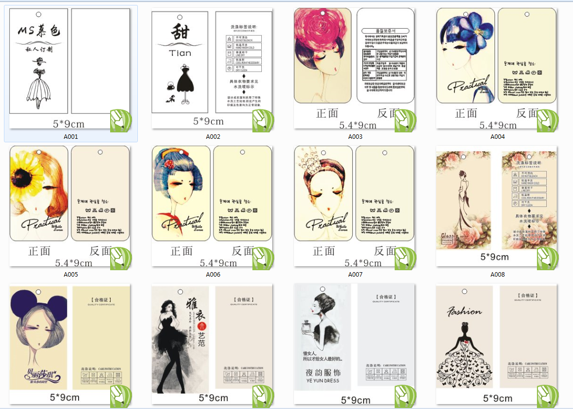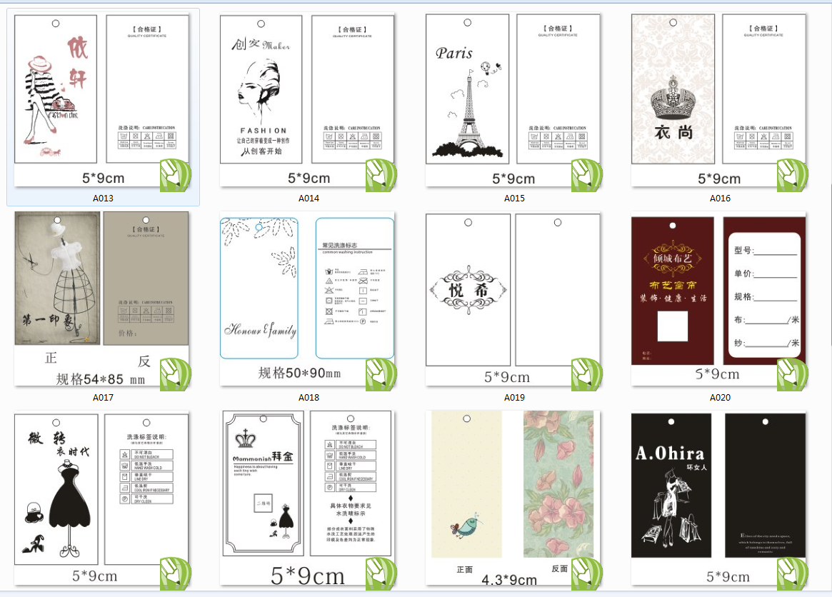 现货吊牌规格: 50*90mm、40*80mm、28*54mm、20*33mm