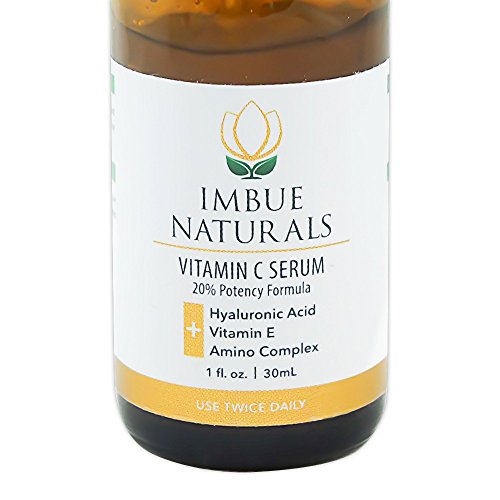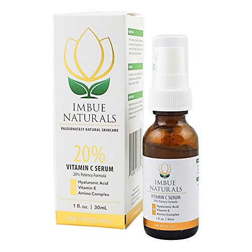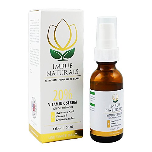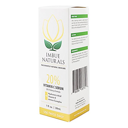 -. Binding : Misc. -. Brand : Imbue Naturals -. Color : Cream -. EAN : 0700358037726 -. Feature : INTRODUCTORY 58% OFF PRICE OFFER. Imbue Naturals is really excited about our product because we know how great it works. We want you to discover just how great you can look too, and so we are offering our product at a large discount for a limited time. / PUREST VITAMIN C SERUM: Imbue Naturals uses ingredients that have been shown to be effective in clinical, scientific trials. We remove the extra ingredients that have no clinical backing (most Vitamin C Serums flooding the market are not based on the actual research completed). Our bottles are packed with more of what gives Vitamin C Serum its potency and by doing this you are getting more value from us than our competitors. Judge our ingredient list for yourself and make an INFORMED decision. / OUR MISSION IS TO HAVE OUR CUSTOMERS BE HAPPY AND HEALTHY. That's why we go above and beyond in our customer service. Imbue Naturals puts our customers as our absolute main priority. We are committed to providing amazing value by offering you extra information in the form of a detailed cheat sheet for using your Imbue Naturals 20% Vitamin C Serum, including information that on various things to avoid that can inactivate Vitamin C Serum. They are easy to avoid so don't jeopardize your results. / IMBUE NATURALS IS A COMPANY FOUNDED IN THE PURSUIT OF PERFECT SKIN. We are passionate about NATURAL skincare. That means (proudly) NO ALCOHOL and NO PARABENS. Imbue Naturals has doctors, medical researchers and beauty experts as advisors to the company to make sure we provide you with the best ways to gain amazing skin using natural and organic ingredients. We spend a lot of time researching what really works and strip away anything not needed. Do NOT compromise, only ever go NATURAL. / ABSOLUTELY RISK FREE PURCHASE. We offer an INDUSTRY LEADING EMPTY BOTTLE guarantee because we are so confident in our product. Our Vitamin C Serum lasts for two years from when it was made and anytime during the shelf life of the product we are happy to offer you your money back if you are not happy for ANY REASON. That's a TWO-YEAR money back satisfaction guarantee! Don't accept anything less than the BEST, you deserve it... -. Label : Imbue Naturals -. Manufacturer : Imbue Naturals -. Model : IN-VITC30 -. MPN : IN-VITC30 -. NumberOfItems : 1 -. PackageQuantity : 1 -. PartNumber : IN-VITC30 -. ProductGroup : Beauty -. ProductTypeName : BEAUTY -. Publisher : Imbue Naturals -. Size : 1 fl. oz. -. Studio : Imbue Naturals -. Title : Vitamin C Serum For Face - Organic Recipe 20% Vitamin C + Hyaluronic Acid + Vitamin E + Amino Complex - Get Radiant Beautiful Skin & Fade Age Spots & Scars - Repairs Wrinkles & Stimulates Natural Anti Aging Collagen - Lifetime Satisfaction Guarantee! -. UPC : 700358037726