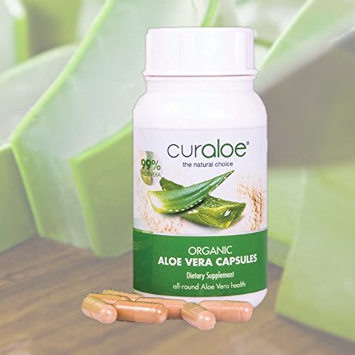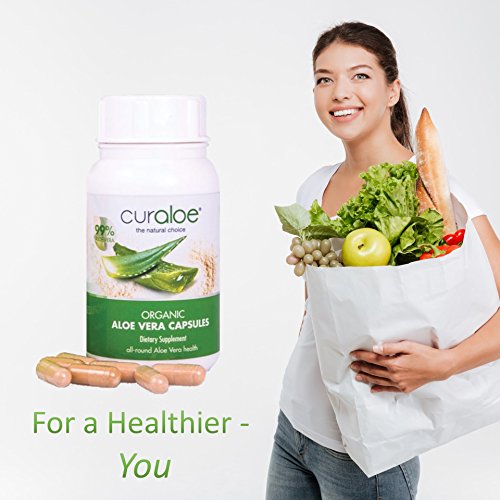 Aloe Vera Capsules - by Curaloe | 99% Pure Organic Aloe | Concentrated Dietary Supplement | Men and Women Nutrition | Easy Swallow Pill | Energy & Immune Boost | Natural Detox | Digestive Care
