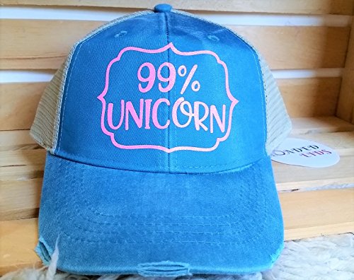 -. Binding : Apparel -. Brand : Loaded Lids -. Color : Grey Brown -. Department : womens -. Feature : Sparkly unicorn inspired design / Professional grade glitter is hand applied in the US / Mid-profile pigment dyed trucker cap with four rows of stitching / Mesh back cap with snapback closure -. ProductGroup : Apparel -. ProductTypeName : HAT -. Size : One Size -. Title : Loaded Lids Women's 99% Unicorn Bling Trucker Style Baseball Cap