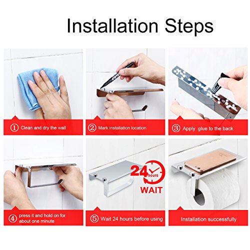 [ Easy to Install ] Easy to install with included Kraftgummi glues. The Strong adhesives can make this toilet paper roll holder adhere to the wall very easily, you don’t need to be afraid to drill a hole on your wall. And we also provide hardware for people who need to drill.