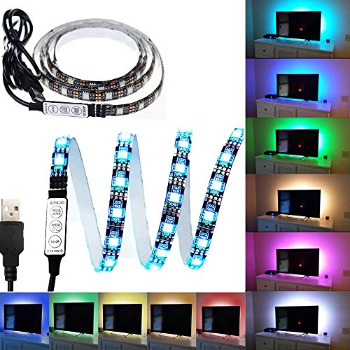 Black PCB TV BackLight Kit,Computer Case LED Light,eTopxizu 3.28Ft Multi-colour 30leds Flexible 5050 RGB USB LED Strip Light with 5v USB Cable And Mini Controller For TV/PC/Laptop Background Lighting
