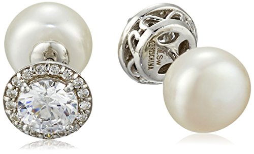 -. Title : Sterling Silver, White Button Freshwater Cultured Pearl (9-9.5 mm), and Cubic Zirconia Day-and-Night Earrings