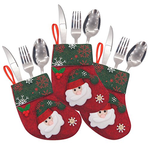 - Adorable rustic 3D santa/snowman/reindeer silverware pockets and utensil holders make your table setting look festive.