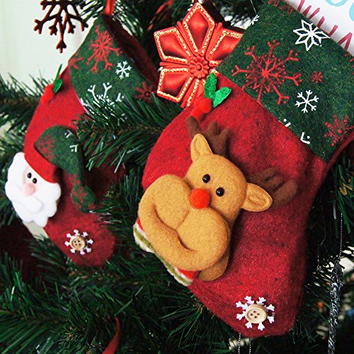 Ivenf 12 Pack 6-1/4" 3D Mini Christmas Stockings, Santa Snowman Gift Card Silverware Holders, Bulk Treats for Neighbors Coworkers Kids Cats Dogs, Small Rustic Felt Red Xmas Tree Decorations Set