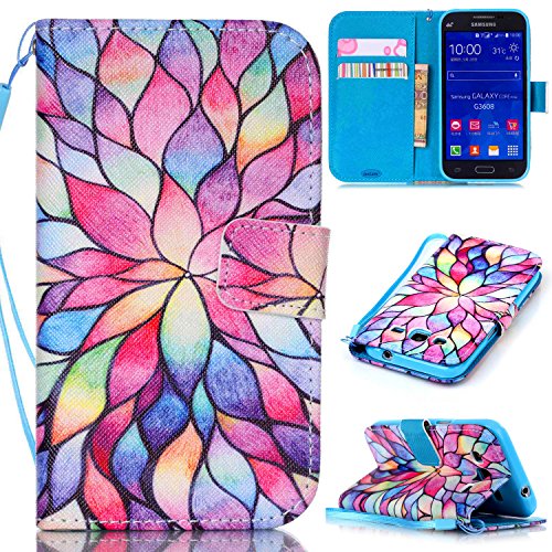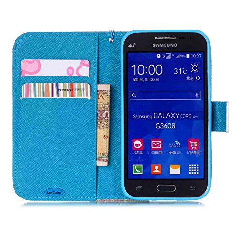 Galaxy Core Prime Case,JanCalm [Wrist Strap Design][Kickstand] Pattern PU Leather Wallet [Card/Cash Slots] Flip Cover for Samsung Galaxy Core Prime*Including-ONE Crystal Pen (Water lily)