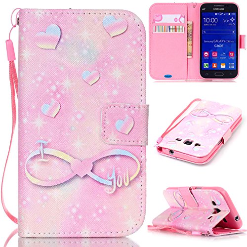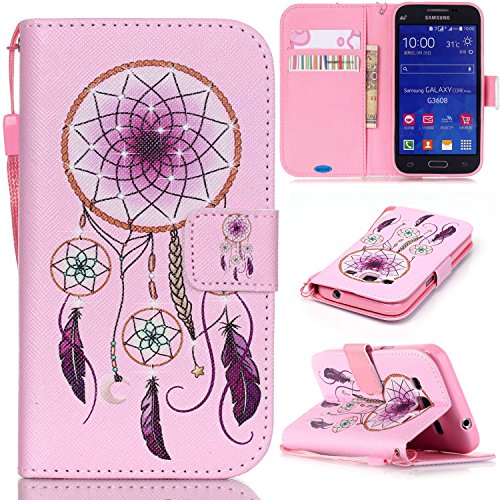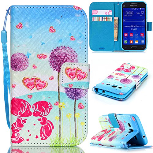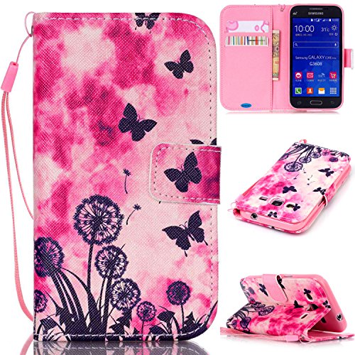 WALLET Style - Included 2 Card Slots And Money pocket - Carry around your ID, credit or debit cards, and cash without having to take your wallet with you.Built-in magnetic for secure closure.Stylish PU Leather Wallet Case for Samsung Galaxy Core Prime.Detachable Wrist strap for carrying convenience