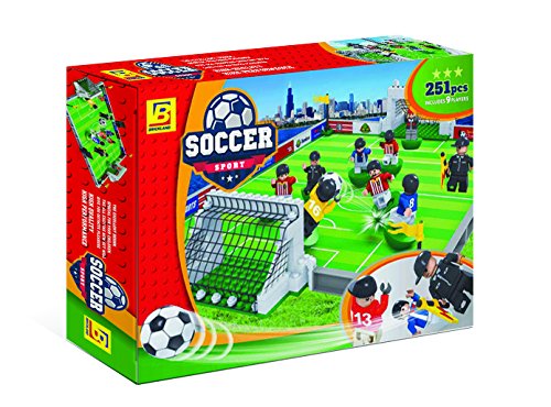 -. Title : BrickLand SOCCER SPORT Compatible Building Block Toy Set of 251 Pieces - 9 Soccer Players, with Goal Nets and Soccer Field for Kids 6+