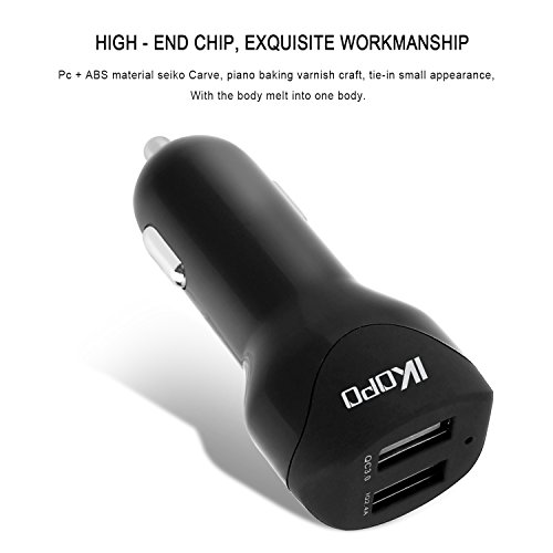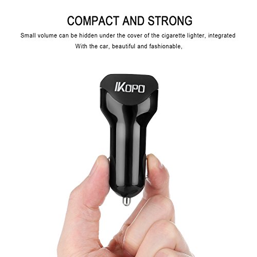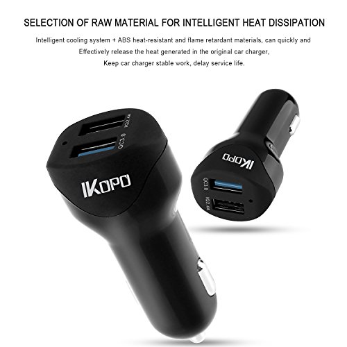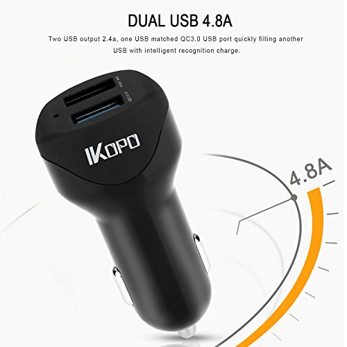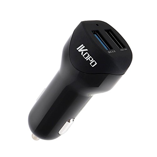 IKOPO Quick Charge 3.0 Car Charger, 30W Dual Output USB Smart 5V/2.4A + USB Car Charger QC 3.0 Suitable for iPhone iPad Samsung Galaxy edge and Other USB Powered Devices (Black)