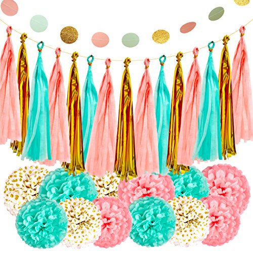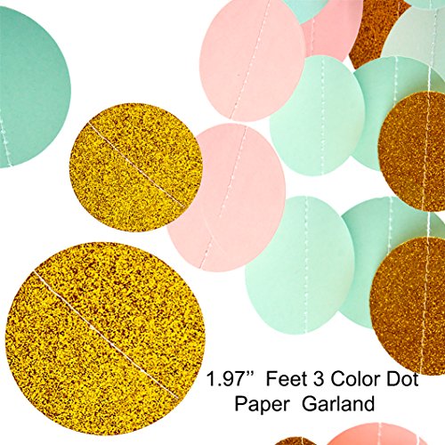 Mint Peach Gold Party Decorations Paper Garland for Baby Shower