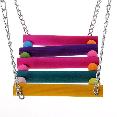- 5pcs Wood ladder Swing length: 4.33in (11cm), Width: 3.15in (8cm), Hanging height: 6.7in (17cm). 12pcs Wood ladder Swing length:31in , Width: 4in.It is a suitable size for the case to install. (reference the cage size before you buy). Make sure the pets have enough space to play.