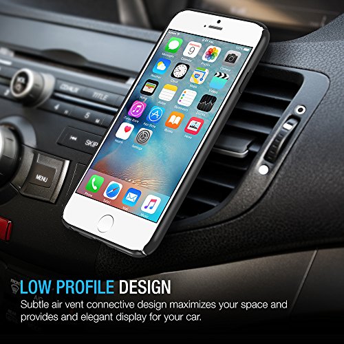 COMPACT DESIGN: Minimized car mount design easily fits into the air vent of the vehicle. Easy to remove, the iPhone car mount can easily be stored in a glove box during times of non-use.
