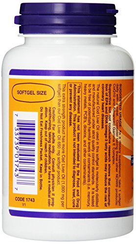 -. Binding : Health and Beauty -. Brand : NOW Foods -. Color : Parent -. Label : Now Foods -. Manufacturer : Now Foods -. PackageQuantity : 1 -. ProductGroup : Grocery -. ProductTypeName : HEALTH_PERSONAL_CARE -. Publisher : Now Foods -. Studio : Now Foods -. Title : NOW Foods - Cod Liver Oil Extra Strength 1000 mg.