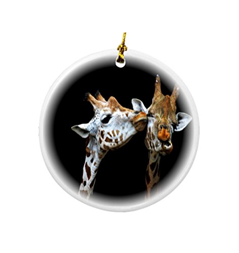 Rikki Knight Kissing Giraffes Design Round Porcelain Two-Sided Christmas Ornaments