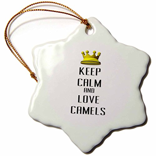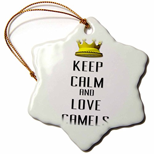 3dRose orn_120972_1 Gold Crown Keep Calm and Love Camels Snowflake Ornament, Porcelain, 3-Inch