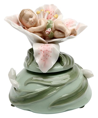 StealStreet SS-CG-80121 4.5" Rotating Baby Sleeping on White Flower Lily Music Box