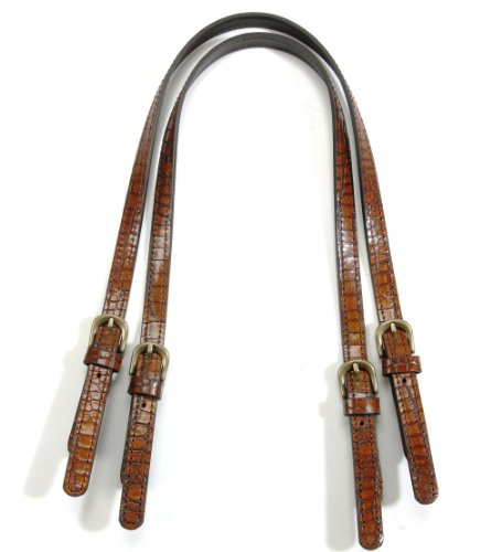 byhands Genuine Leather Purse Handles / Bag Strap with Crocodile Pattern, Brown, 28" (30-5505)