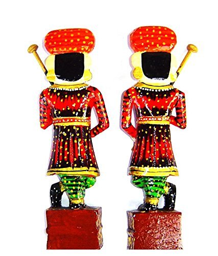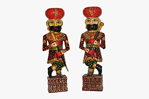 Handmadeo artize Traditional Rajasthani Decorative Handicraft Wooden Royal Gaurd / Darbaan / Watchman Set Of 2 Home Decor Beautiful Showpiece (12") for living room