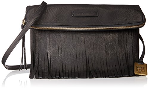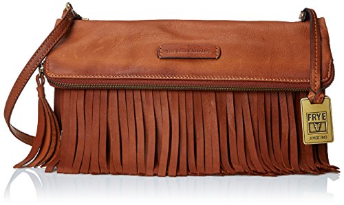 A slim Frye fold-over clutch, rendered in wrinkled leather and accented with fringe. The top zip opens to a lined, 3-pocket interior. Optional, adjustable shoulder strap. Dust bag included.Feature