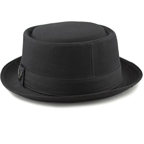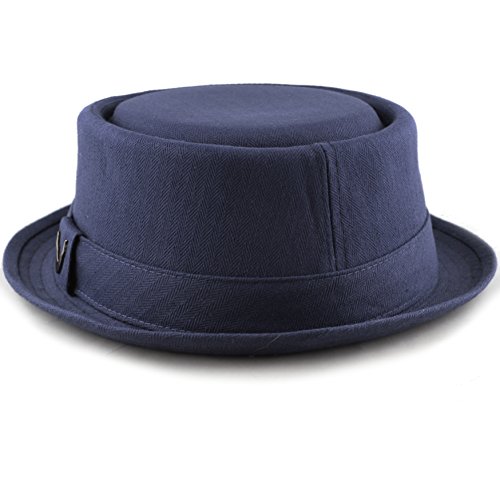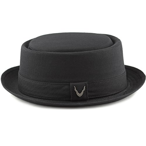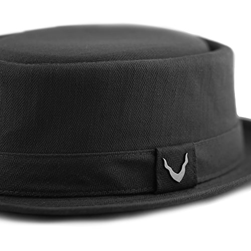 The Hat Depot BLACK HORN Unisex Cotton Herringbone Pork Pie Hat