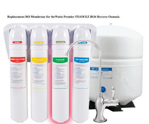 - 50-Gallon per day RO membrane for the Watts Premier 531418 EZ RO4 reverse osmosis^Fast filter change out with valve in head engineering and quick twist filter replacement^Sanitary quarter turn filter change^Reduces TDS, sodium, arsenic, lead, percholate, radium, uranium, protozoan cysts and more^The heart of your reverse osmosis system reducing impurities down to 1/10,000 of a micron