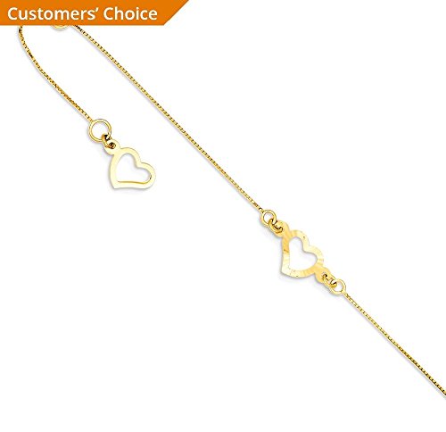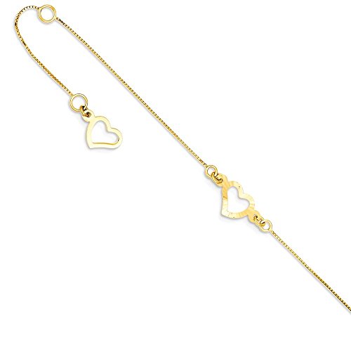 ICECARATS DESIGNER JEWELRY 14K YELLOW GOLD ADJUSTABLE CHAIN PLUS SIZE EXTENDER HEART ANKLET FOR WOMEN ANKLE BEACH CHAIN BRACELET