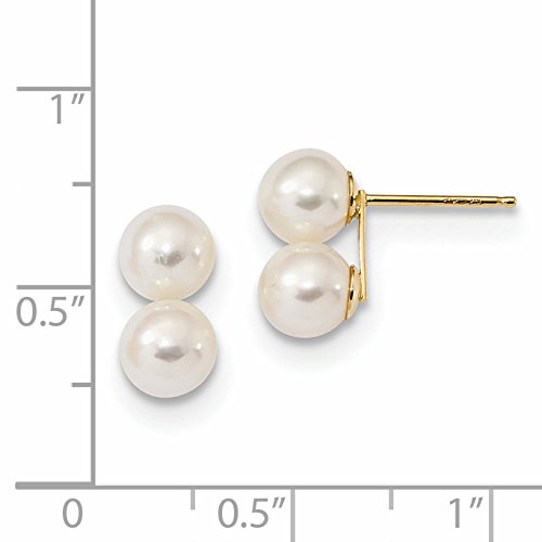 ICECARATS DESIGNER JEWELRY 14K YELLOW GOLD 7MM WHITE ROUND FRESHWATER CULTURED DOUBLE PEARL POST STUD BALL BUTTON STUD EARRINGS