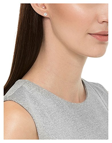 Platinum-plated sterling silver stud earrings embellished with (2 cttw) round brilliant cut Swarovski Zirconia and features a decorative filigree at the sides