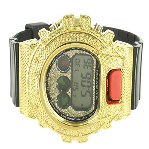 -. Title : Men Custom Bling Golden Bezel Digital Techno Watch Illuminator Men Sale