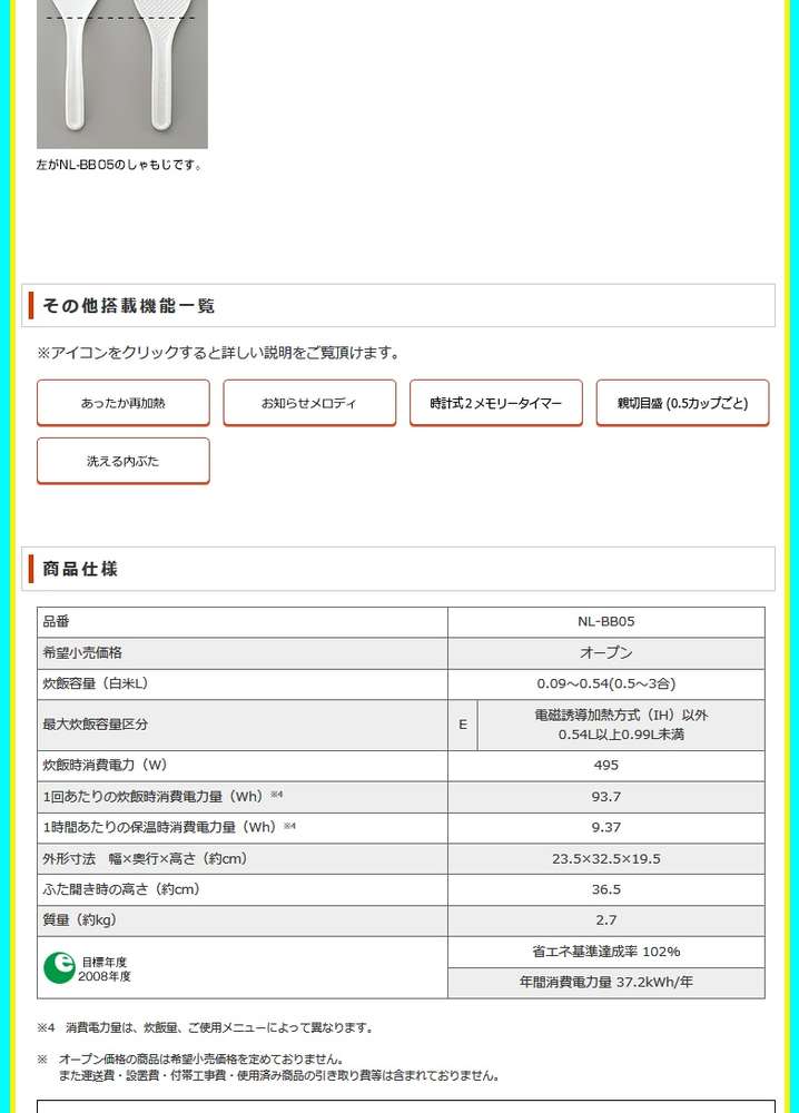 ●炊飯容量(白米L):0.09~0.54(0.5~3合)