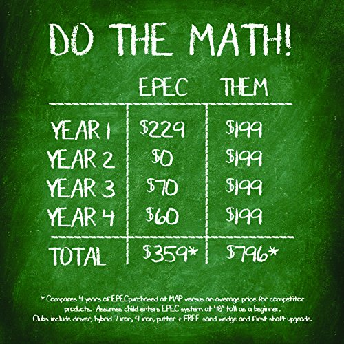 Studio : DV8 Sports Publisher : DV8 Sports Binding : Misc. Product Description EPEC is a revolutionary innovation in golf--upgradeable junior golf clubs. Instead of replacing entire sets every 12 to 18 months, with EPEC you upgrade the set and in the process save hundreds of dollars. And upgrading your EPEC set is simple. Just tell us on-line that it's time for an upgrade and we'll email you a mailing label. Put that on your box of clubs and drop them at a FedEx Office location and in a few days, you'll get your set back with new longer shafts and fresh grips. We'll also reweight the irons if it is time for that as well. EPEC clubs are built to last the lifetime of your child. These are clubs of the highest quality, made affordable by our weight technology and upgrade model. Your child will show up at lessons or golf camp with clubs the pro will approve of and appreciate. Your child will learn faster and enjoy the game more since they are using equipment that always fits perfectly and responds to their swing like the extension of their body it should be. Don't settle for cheap clubs that will cost you more in the long run and can discourage a young golfer. We've worked hard to make the best affordable and we believe you will be 100% satisfied or we will refund your purchase. 0