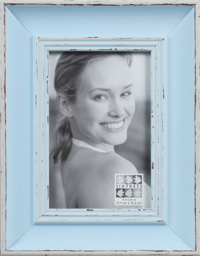 Sixtrees Coastal Luxury Frame, 4 by 6-Inch, Light Blue Wash