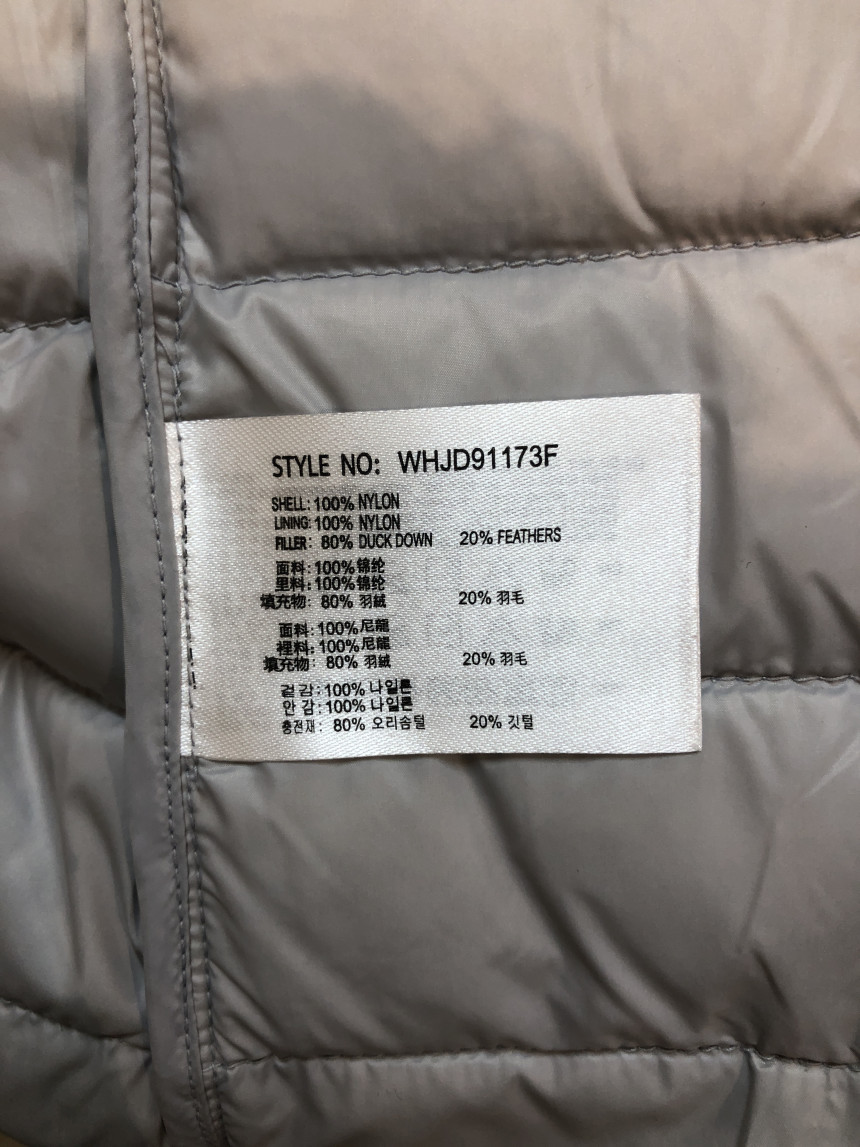 충전재는 오리솜털 80%, 오리깃털 20% 함량으로