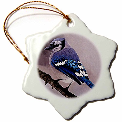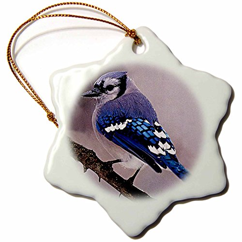 3drose Blue Jay Snowflake Porcelain Ornament, 3-Inch