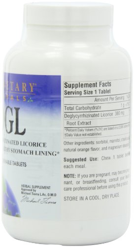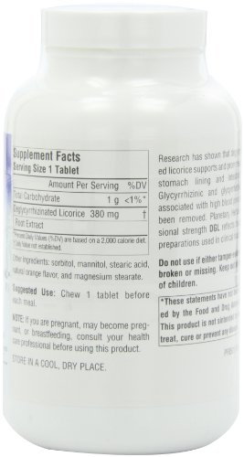 -. Feature : Supports and promotes a healthy stomach lining / Supports and promotes intestinal flora / Glycyrrhizinic and glycyrrhetinic acids, associated with high blood pressure, have been removed / Reflects dosages and preparations used in clinical studies / Chew 1 tablet before each meal, or as recommended by your health care professional